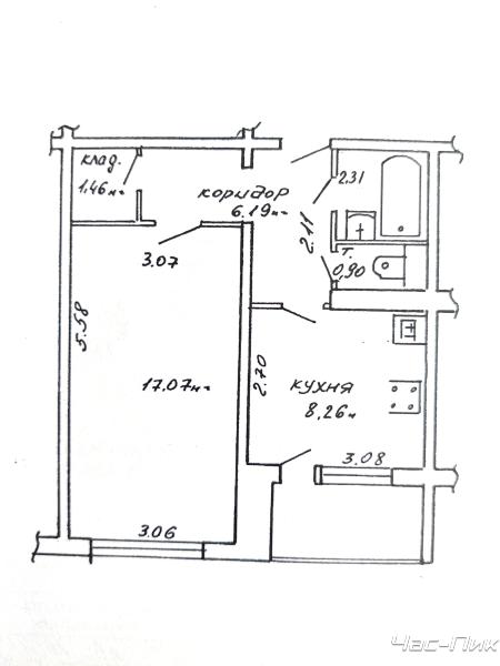 Площадь общ./жил./кух.: 37,9/17,1/8,3