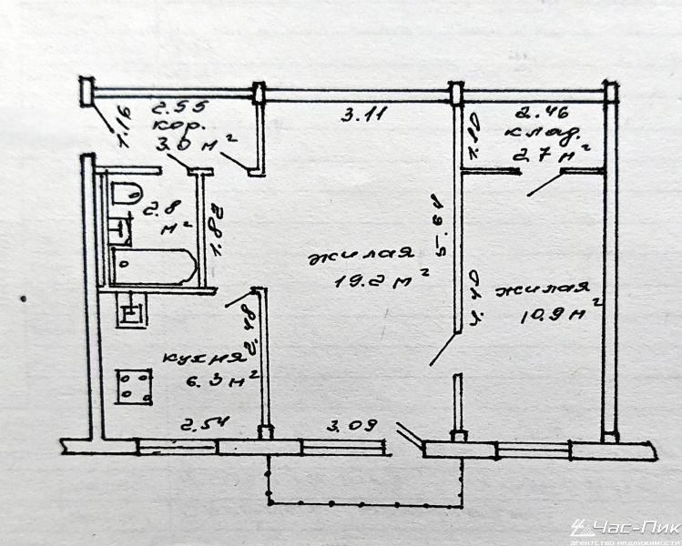 Площадь общ./жил./кух.: 45,4/30,1/6,3