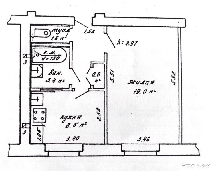 Площадь общ./жил./кух.: 36,9/19/8,5
