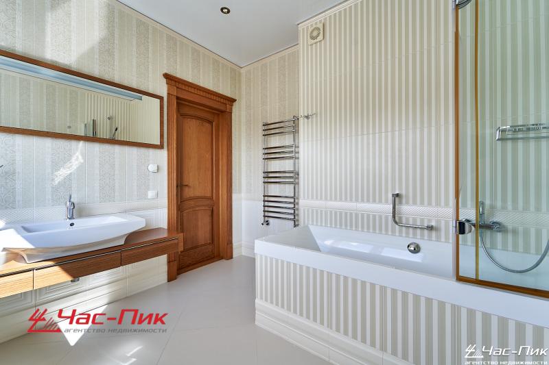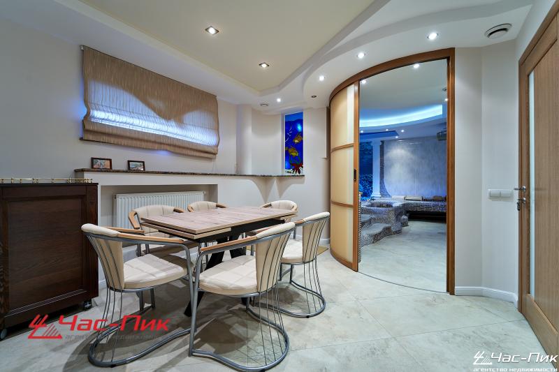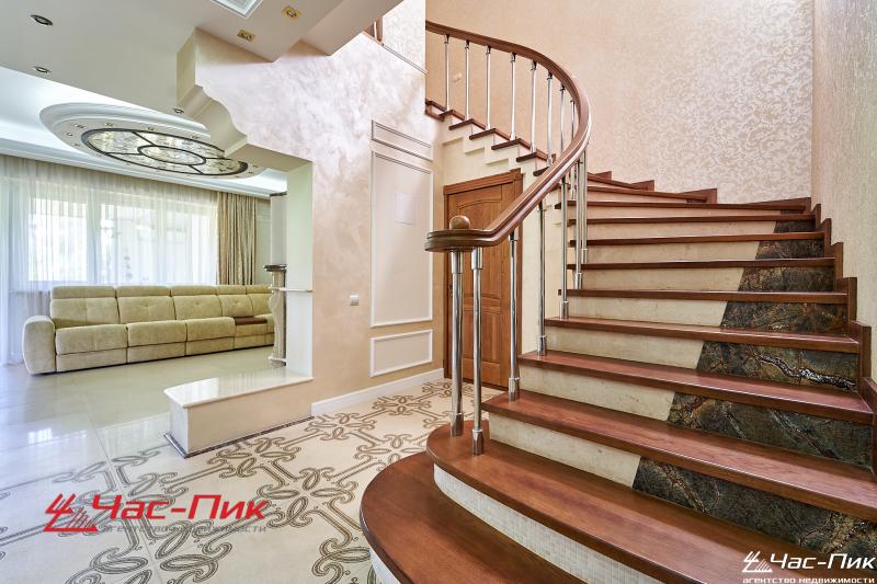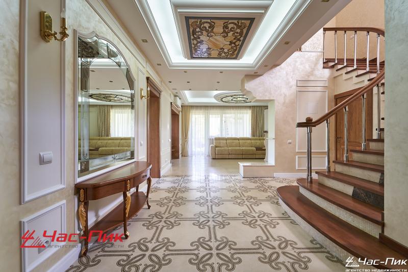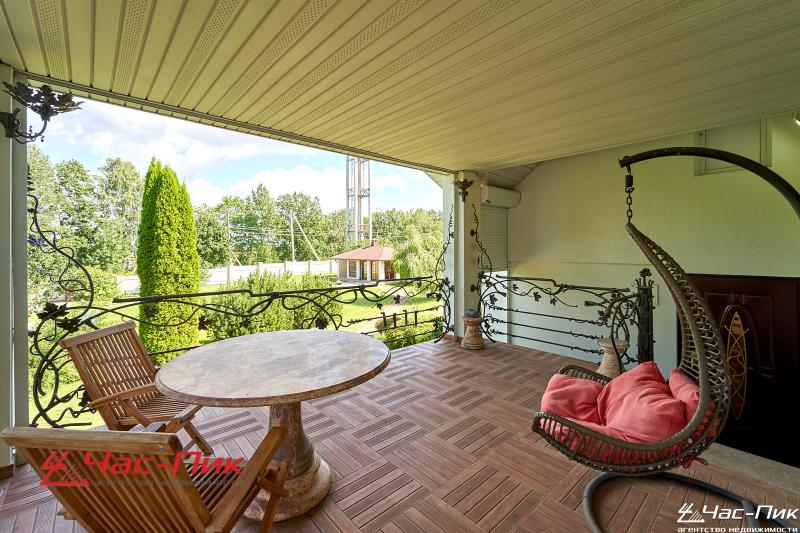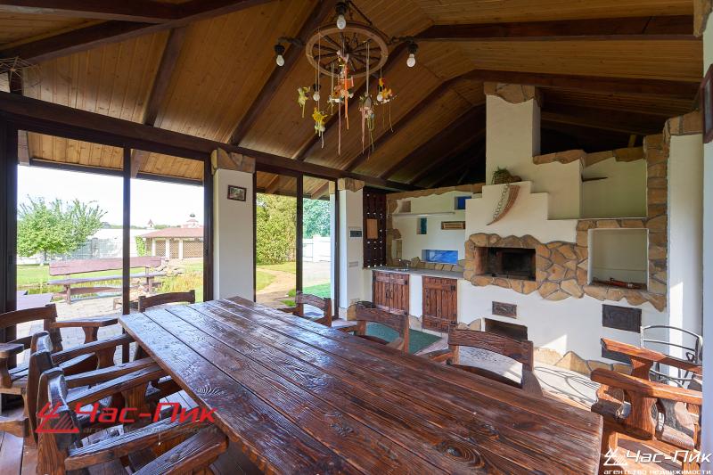 Усадьба премиум-класса в элитном коттеджном поселке Тарасово, ул.Сосновая. Уникальное расположение сочетает в себе уединение и мгновенный доступ к городу. Участок: - 23 сотки в частной собственности. Ландшафтный дизайн. Газон, плодовые (яблони, груши, сливы) и декоративные насаждения, дорожки вымощены камнем. - Зона барбекю с беседкой обустроена эксклюзивной мебелью по индивидуальному заказу. Проведен водопровод и канализация. - Пруд - Оборудованная мастерская. - Вольер для собак. - Располагается в коттеджной застройке, имеет удобный подъезд. - Автополив, въездные ворота с дистанционным управлением, освещение территории и периметра дома, видеонаблюдение - Зонированием территории предусмотрена большая парковка на участке, входная зона в дом, приватный задний двор. Два заезда на участок. - Огорожен забором (фундамент ленточный глубокозаглублен и армирован) - Ливневая канализация от дома, отдельный дренаж участка - Интеллигентные соседи - До Минска 5 мин на автомобиле, остановка общественного транспорта в 2 мин ходьбы прогулочным шагом (загородная жизнь в непосредственной близости к городу) Коммуникации/инженерное оборудование: Вода - центральная. Водопровод разведён по участку (3 водорозетки). Канализация - местная (30 кубов), ливнёвая с выводом в пруд. Электричество - 220/380Вт, тёплый пол с датчиками температуры по комнатам. Отопление - газовый котёл Vaillant . Вентиляция - приточно-вытяжная с функцией рекуперации (несколько установок на разные зоны дома). Зона SPA/зона бильярда и кладовки – очистка и подготовка воды, отдельная система рекуперации и осушения. Видеонаблюдение внутри дома и по периметру участка с центром мониторинга в кабинете. Дом: Фундамент – блоки ФБС (идеальная гидроизоляция и утепление), подушка ПГС по верху армированный пояс. Стены – блок 500 мм + утепление минвата 50-70 мм, оштукатурен, окрашен Фасад – короед. Окна ПВХ Кровля гибкая черепица Katepal (Финляндия). Противовзломные роллеты и двери. По периметру дома – система безопасности от проникновения. Назначение помещений: 1 этаж. - крыльцо из гранита с эксклюзивными коваными перилами, входная группа, - холл или парадная, - гостиная с камином из мрамора, пол – итальянская плитка с натуральной позолотой, аудиосистема Supra с выводом в спальни, -кухня-столовая полностью оборудована импортной качественной мебелью и техникой, - гостевой санузел со стиральной и сушильной машинами Bosch, сантехника Grohe и Hansgrohe, сантехпосуда Duravit - кабинет с центром мониторинга системы видеонаблюдения, - гараж на 2 автомобиля с роллетами и гаражными воротами, кабель для зарядки электромобиля, - тёплая кладовка с морозильной камерой, - холодная кладовка, - выход на террасу и приватный задний двор - банный комплекс с выходами в дом и на улицу. Оборудован импортной мебелью и техникой. Бар. Приточно-вытяжная вентиляция с рекуперацией. Эксклюзивный дизайн с витражами, мозаикой и картинами. - бассейн 3*3,5 м с подсветкой, автоподогревом и фильтрацией, - ванна-купель, лежак с подогревом из мрамора, - парная с 2 печками, на дровах и электро (Harvia), - комната отдыха, - санузел 2 этаж: - холл с выходом на чердак, - 2 отдельные спальные комнаты с гардеробными - хозяйская мастер-спальня (санузел и гардеробная) с выходом на балкон, - санузел Цокольный этаж: - бильярдный зал. Оборудован мебелью из массива дуба. Коллекционный премиум бильярдн