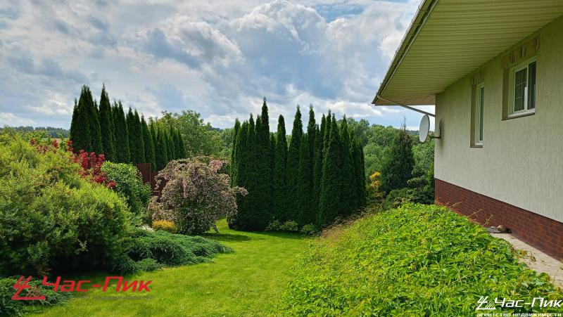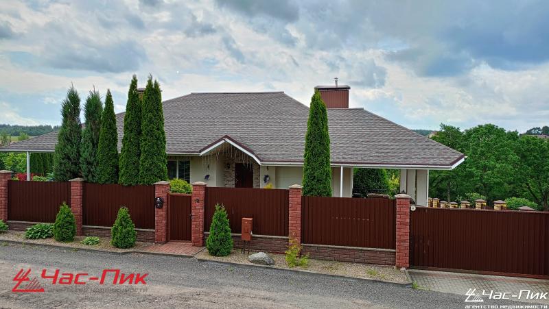 Продается дом в пригороде Минска, 2 км от МКАД, Гродненское направление д. Тарасово, Минская область, Минский район, Ждановичский с/с. Дом построен на склоне, выходящем к ручью, очень грамотно вписан в уникальный рельеф участка. Красивый вид из окон и террасы, так как дом расположен в высшей точке участка площадью 20,82 сотки на высоте 15 метров над уровнем ручья и очень умело и с любовью благоустроен. Композиции хвойных и кустарниковых растений практически не нуждаются в уходе. Водоем/ река рядом, живописное место, ландшафтный дизайн, сад, хоз. постройки. На нижнем уровне участка разбит небольшой огород, на среднем уровне- оборудована зона для установки бассейна или костровой зоны. Жилой дом оптимальный по размеру и функциональности: одноэтажный, блочный с цокольным этажом, крыша - мягкая черепица, год постройки 2011, площадь - 237 м кв.. На основном уровне находятся 3 спальни общей площадью 50,9 м кв., 2 сан. узла, кухня-гостиная - 49,5 м кв., с большими окнами из которых открывается потрясающий вид в любое время года. Большая терраса – 27м кв., примыкающая к кухне-столовой, позволит Вам насладиться утренним кофе и созерцать волшебные закаты. На нижнем уровне дома находится котельная-постирочная 16 кв.м., оборудованная мини-ванной, помещение для сауны (все коммуникации подведены) и большая комната 30 кв.м, которая может быть использована как гостевая, кабинет, игровая и имеющая выход на террасу - нижний уровень, оборудованную для «шашлычных» посиделок. В доме установлен котел «Vaillant», система очистки и умягчения воды, программируемые датчики теплого пола, встроенный пылесос, кондиционер. Проведено оптоволокно, установлено спутниковое TV. Встроенная кухня из массива ясеня со всей техникой. Дом расположен на тихой улице в центре Тарасово, недалеко от церкви. Удобное транспортное сообщение. Остановка городского автобуса находится в 300м. Населенный пункт с развитой инфраструктурой. Торг.