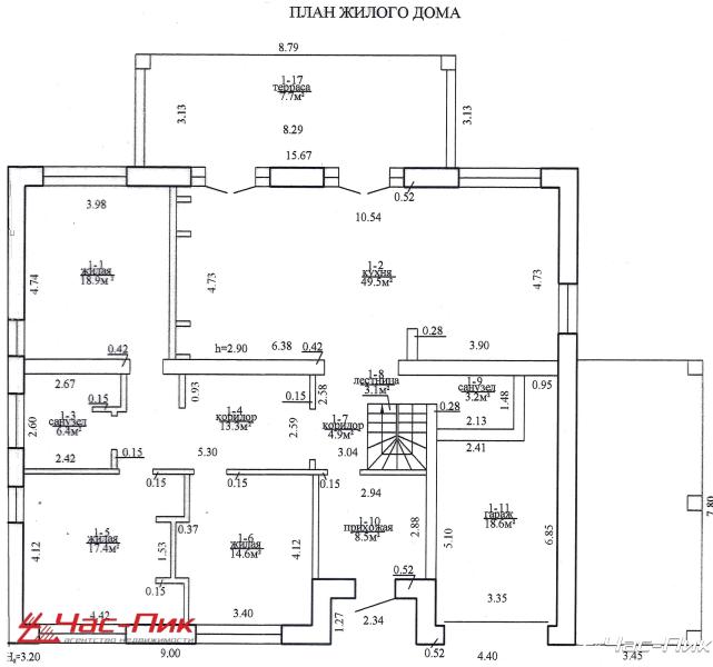 Площадь общ./жил./кух.: 237/85,9/49,5