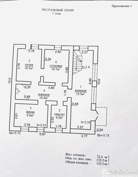 Площадь общ./жил./кух.: 132,5/72,5/21,2