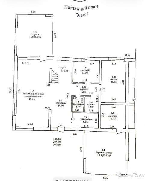 Площадь общ./жил./кух.: 306/146,4/45,4
