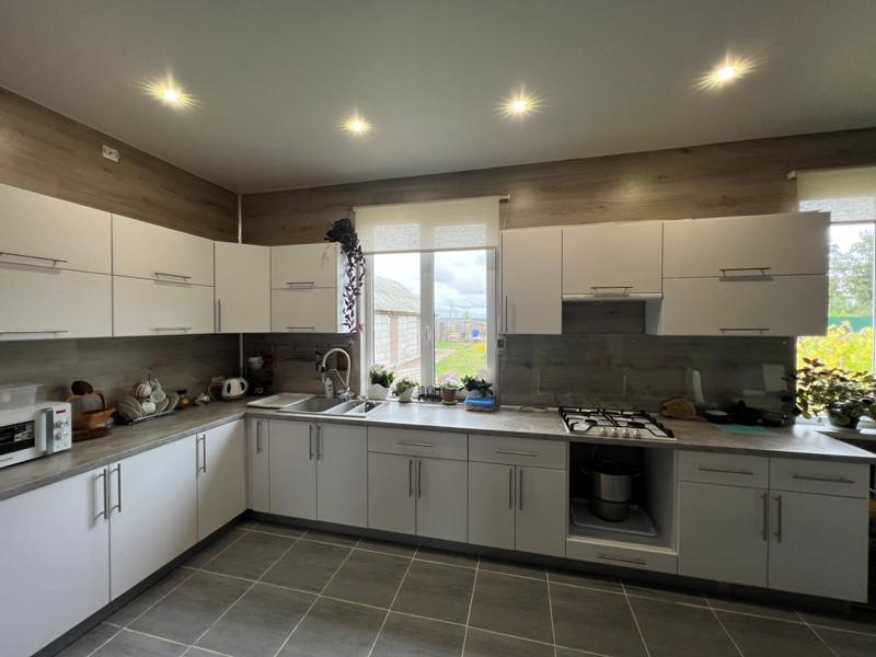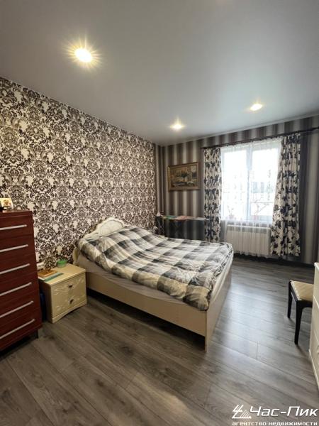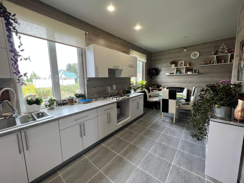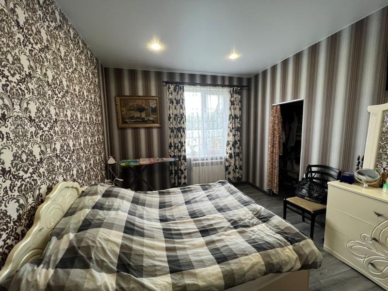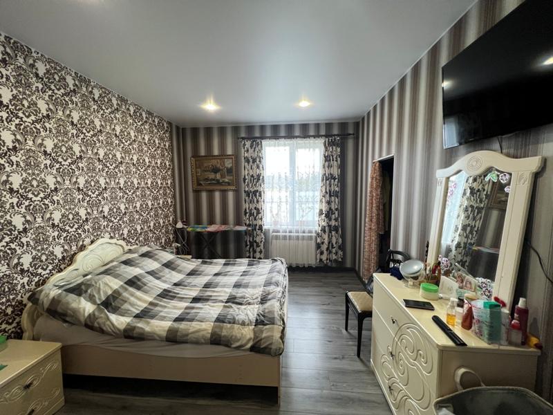 Хорошее расположение дома! Возведен в 2020 году. В доме произведен ремонт. Входная дверь – металлическая. Установлены стеклопакеты ПВХ. По всему дому - натяжные потолки, напольное покрытие – плитка (кухня, коридор, ванная комната), ламинат (жилые комнаты). Теплые полы по всему дому. Высокие потолки 2,84 м. Большая кухня – 21 кв. м. Отделка стен на кухне – ламинат. В доме две гардеробные комнаты. В коридоре установлен шкаф-купе. В ванной комнате стены и потолок – панели ПВХ. Установлен электрокотел. Газ баллонный привозной. Участок 15 соток в частной собственности! Участок ровный, ухоженный, огорожен по периметру (металлопрофиль + сетка рабица). Баня! Гараж! Хозпостройка для хранения инвентаря! На участке колодец! Центральный водопровод! Дополнительно пробурена скважина! Возможна продажа со всей мебелью.