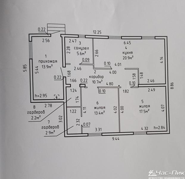 Площадь общ./жил./кух.: 87,1/33,8/20,9