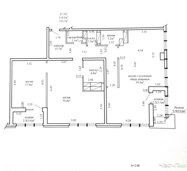 Площадь общ./жил./кух.: 119,7/87,3/15