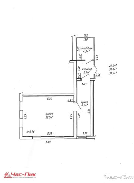 Площадь общ./жил./кух.: 38,5/22,5/8,3