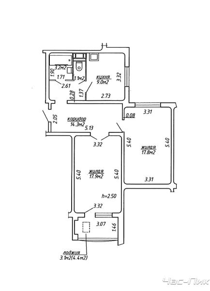 Площадь общ./жил./кух.: 66,4/35,7/9
