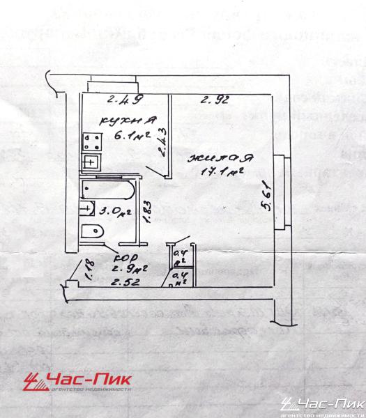 Площадь общ./жил./кух.: 29,9/17,1/6,1