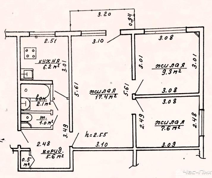Высота потолков: 2,6 м