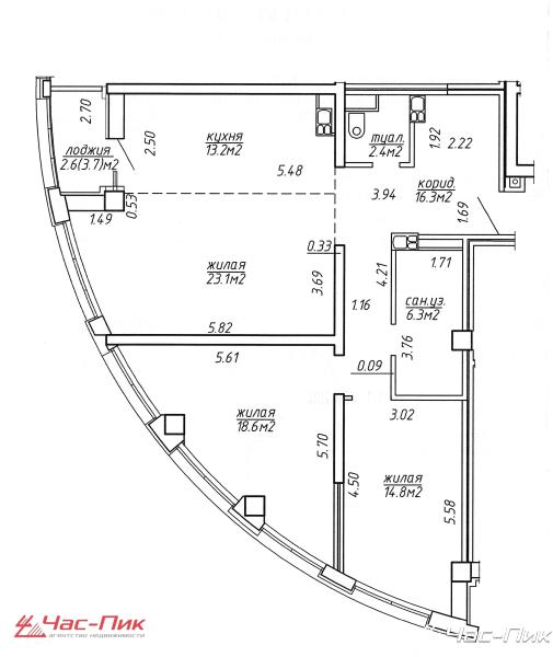 Площадь общ./жил./кух.: 97,3/56,5/13,2