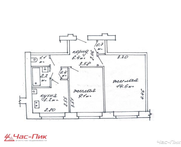 Площадь общ./жил./кух.: 40,7/23,7/6,2
