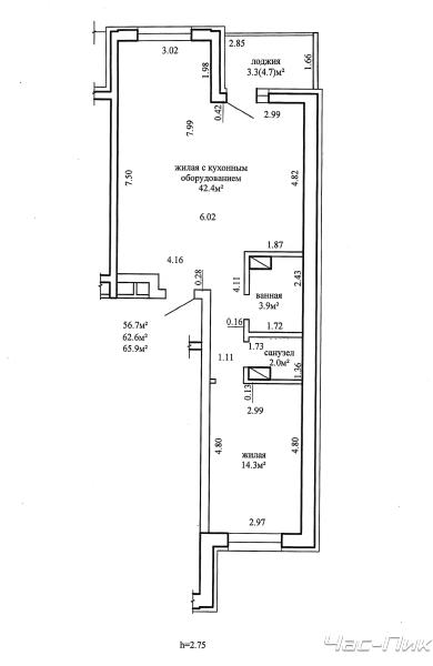 Площадь общ./жил./кух.: 65,9/42,4/1