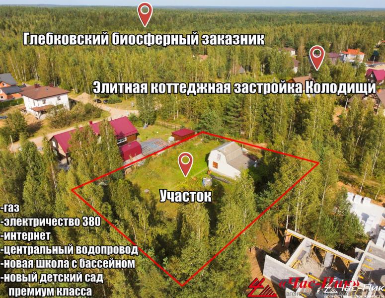 Продаётся премиальный земельный участок 15 соток примыкающий к лесу в современном престижном "Коттеджном посёлке Колодищи-2" аг.Колодищи, ул.Вознесенская, Московское направление, Минский район, 1 км от границ г.Минска, (6 км до станции метро `Уручье`); Глебковский биосферный заказник; приглашаем на осмотр! Жилая современная коттеджная застройка; все коммуникации: свет 380, газ, центральный водопровод, оптоволокно; участок с собственным лесом; остановка городского автобуса до метро "Уручье"; инфраструктура в застройке: магазины "Евроопт","Санта", в застройке новая школа на 720 учащихся и новый детский сад, рядом функционирующий спортивный и детский комплекс для детей и взрослых "Полигон Арена", рядом "Гольф-клуб Минск", удобный подъезд, одно из лучших мест в пригороде Минска для строительства коттеджа, все документы к продаже в соответствии с действующим законодательством РБ, фото с участка; торг. Поможем профессионально быстро и выгодно продать Вашу недвижимость в связи с покупкой вышеуказанного объекта недвижимости, размещение рекламных объявлений на лучших специализированных интернет площадках Республики Беларуси, России, стран ближнего и дальнего зарубежья-70 стран мира, Профессиональная фото-видео-аэросъемка, рекламные ролики в социальных сетях, а также использование самых современных и уникальных технологий для успешной продажи Вашего объекта недвижимости. Ответим на Ваши вопросы, предоставим всю необходимую информацию. Напишите Нам в удобный для Вас мессенджер: Viber | Telegram | WhatsApp. Риэлтер Александр Владимирович.