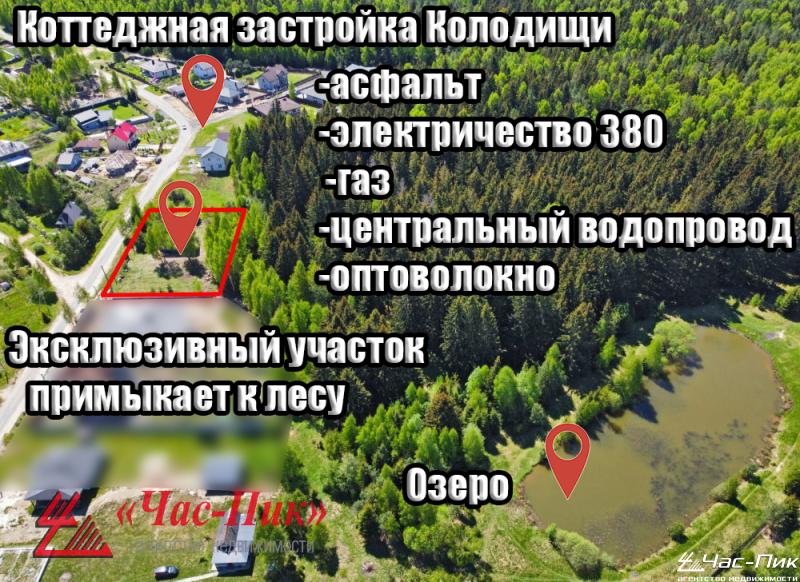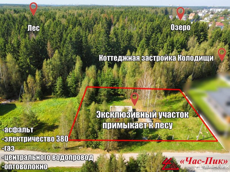 Продаётся уникальный, волшебный земельный участок 15 соток примыкающий к "Глебковскому биосферному заказнику" с прямым выходом в "Сосновый лес" и "Лесному озеру" в аг.Колодищи, ул.Сиреневая, Московское направление, Минский район, 7 км от г.Минска, (10 минут до станции метро `Уручье`), Первая Береговая линия чудесного "Колодищанского озера", Премиум-класс, приглашаем на просмотр! Жилая современная коттеджная застройка; все центральные коммуникации: асфальт до участка; свет 380 - 15 Квт, газ, центральный водопровод на участке, оптоволокно; Участок ровный, приватизирован (частная собственность)! Прекрасная инфраструктура в застройке: магазины "Евроопт","Копеечка", в застройке новая школа на 720 учащихся и новый детский сад, аптека, банк, дом культуры, поликлиника, почта, футбольный стадион, функционирующий спортивный и детский комплекс для детей и взрослых "Полигон Арена", "Гольф-клуб Минск"; отличное транспортное сообщение с Минском, маршрутное такси, автобус; удобный подъезд; одно из лучших мест в пригороде Минска для строительства коттеджа, все документы к продаже в соответствии с действующим законодательством РБ, фото с участка, торг. Поможем профессионально быстро и выгодно продать Вашу недвижимость в связи с покупкой вышеуказанного объекта недвижимости, размещение рекламных объявлений на лучших специализированных интернет площадках Республики Беларуси, России, стран ближнего и дальнего зарубежья-70 стран мира, Профессиональная фото-видео-аэросъемка, рекламные ролики в социальных сетях, а также использование самых современных и уникальных технологий для успешной продажи Вашего объекта недвижимости. Ответим на Ваши вопросы, предоставим всю необходимую информацию. Напишите Нам в удобный для Вас мессенджер: Viber | Telegram | WhatsApp. Риэлтер Александр Владимирович.