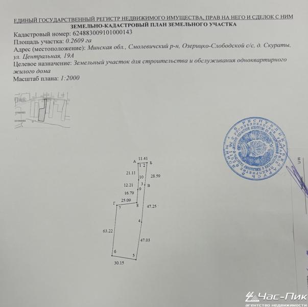 Продаётся просторный земельный участок 26 соток в коттеджном застройке д.Скураты, ул.Центральная 19А; вблизи "Кургана Славы", Московское направление; 20 км от МКАД; приглашаем на осмотр! Торг! Жилая коттеджная застройка; свет 380; газ, центральный водопровод, интернет; асфальт до участка; целевое назначение участка - для строительства и обслуживания жилого дома; частная собственность на земельный участок; транспортное сообщение, остановка маршрутного такси; инфраструктура на доступном расстоянии: магазин, школа, детский сад; удобный подъезд; одно из лучших мест в пригороде Минска для строительства загородного дома; очистка дорог от снега зимой; все документы к продаже в соответствии с действующим законодательством РБ; фото с участка! Поможем профессионально быстро и выгодно продать Вашу недвижимость в связи с покупкой вышеуказанного объекта недвижимости, размещение рекламных объявлений на лучших специализированных интернет площадках Республики Беларуси, России, стран ближнего и дальнего зарубежья-70 стран мира, Профессиональная фото-видео-аэросъемка, рекламные ролики в социальных сетях, а также использование самых современных и уникальных технологий для успешной продажи Вашего объекта недвижимости. Ответим на Ваши вопросы, предоставим всю необходимую информацию. Напишите Нам в удобный для Вас мессенджер: Viber | Telegram | WhatsApp. Риэлтер Александр Владимирович.